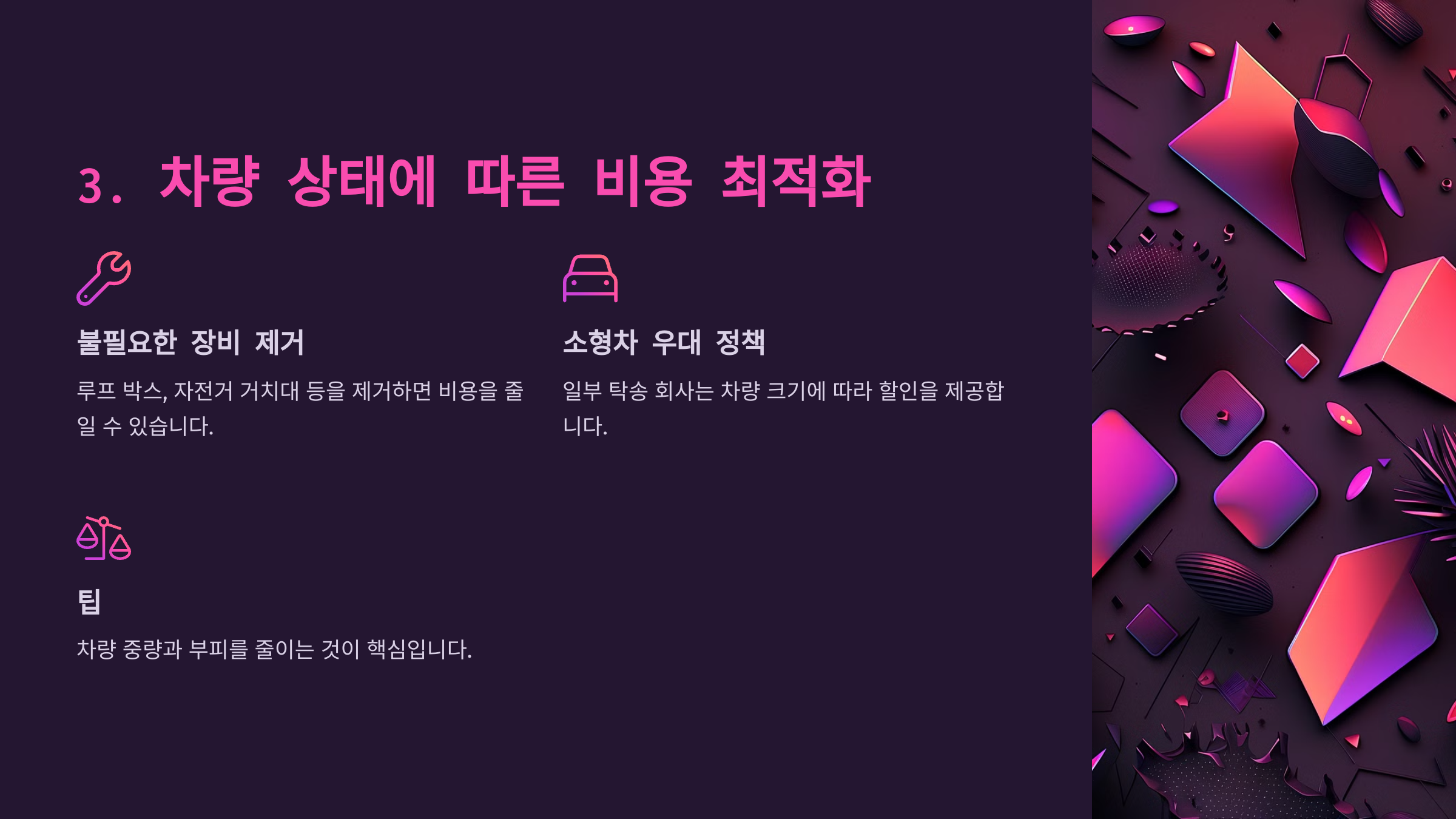 - 📏 소형차 우대 정책: 일부 탁송 회사는 차량 크기에 따라 할인을 제공합니다.
